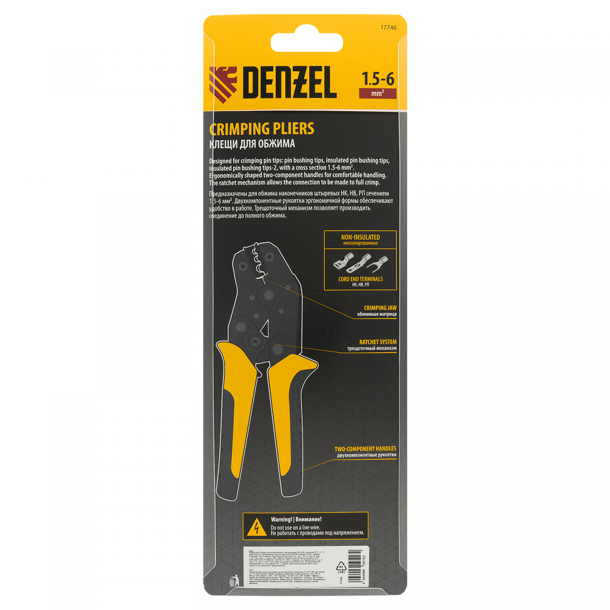 Клещи для обжима неизолированных наконечников НК и НВ, разъемов РП, 1,5 - 6 мм2 Denzel