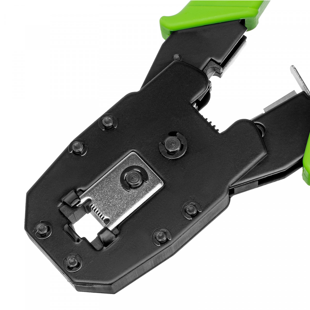 Клещи Сибртех 17733 применяются для обжима клемм (телефонных 4Р/RJ-22, RJ-11/6Р, 6P/RJ-12, компьютерных 8Р/RJ-45), а также имеют функцию обрезания проводов. Пригодятся для бытовых и профессиональных работ с телефонными и сетевыми линиями.