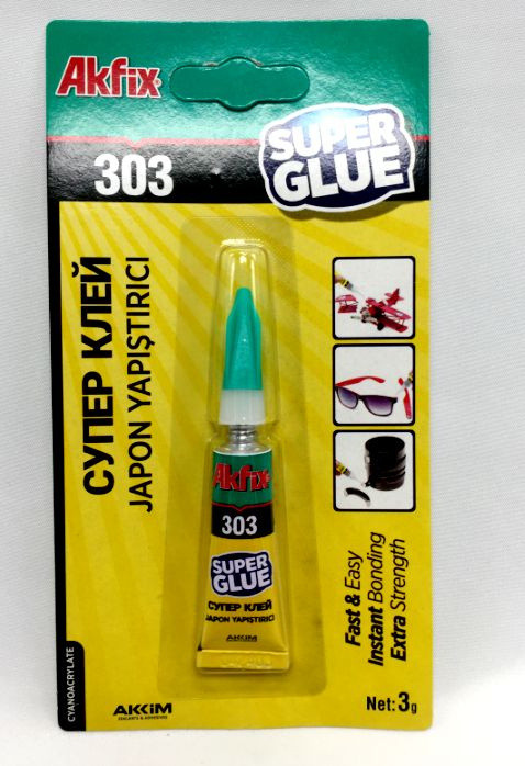 Супер клей Akfix 303 3 гр GA0031 – быстросохнущий клей низкой вязкости на основе цианакрилата. Незаменим там, где требуется очень быстрое высыхание или точечное применение.