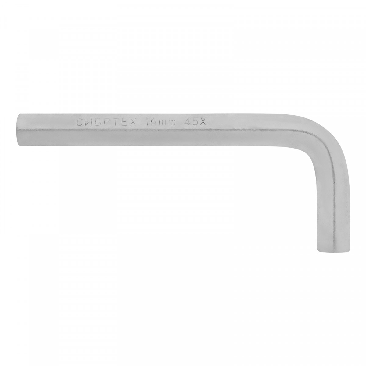 Ключ имбусовый HEX, 16 мм, 45x, закаленный, никель Сибртех