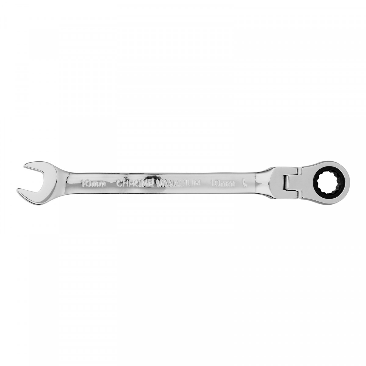 Ключ комбинированный трещоточный, 10 мм, CrV, шарнирный, зеркальный хром Matrix Professional