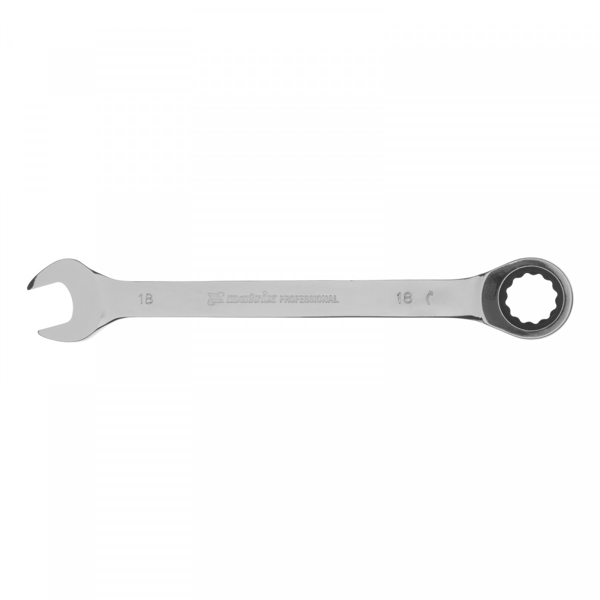 Ключ комбинированный трещоточный, 18 мм, CrV, зеркальный хром Matrix Professional