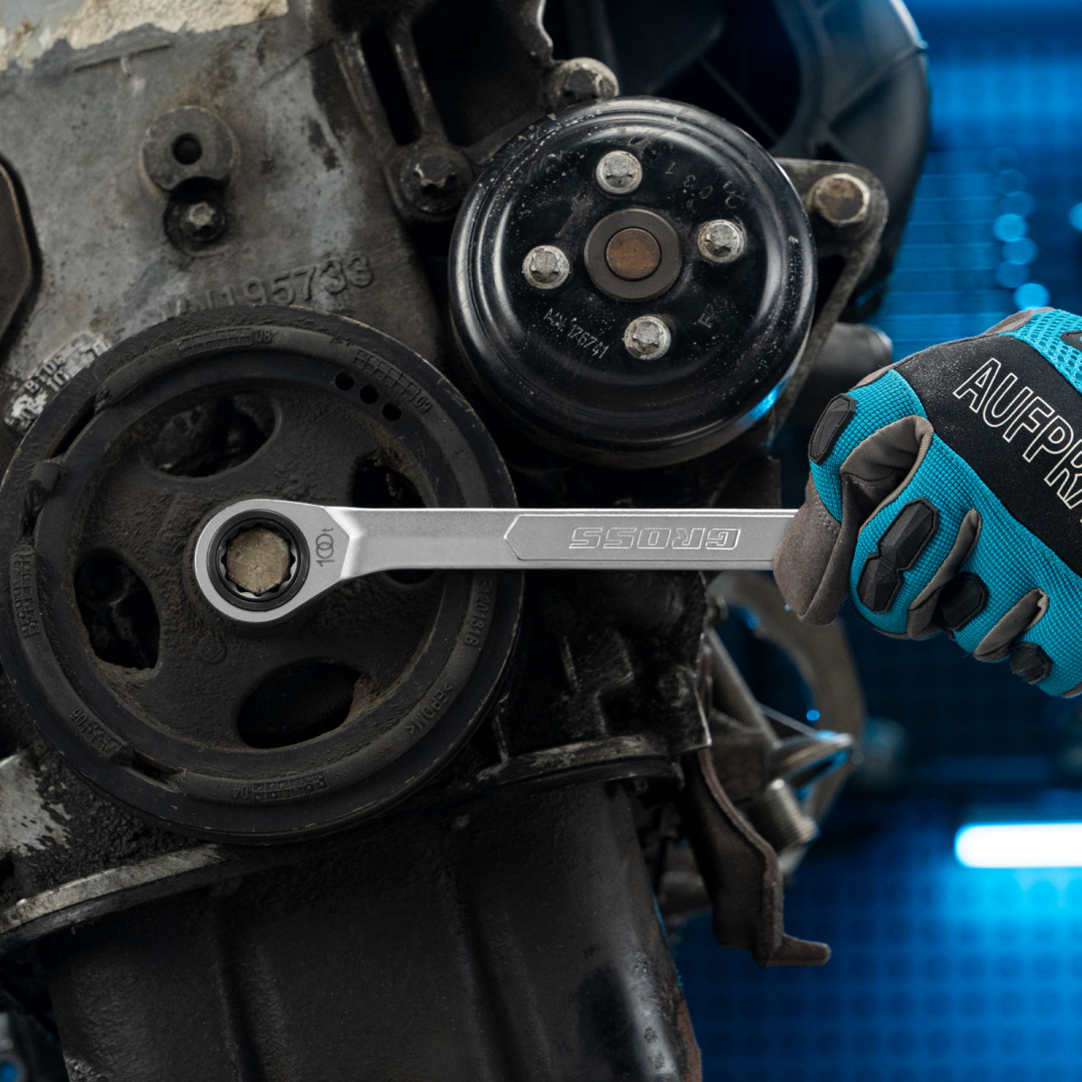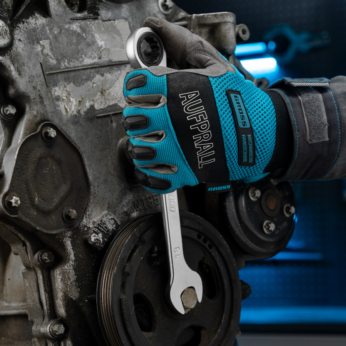 • Благодаря матовому покрытию ключ не выскальзывает из рук, даже если они в масле.