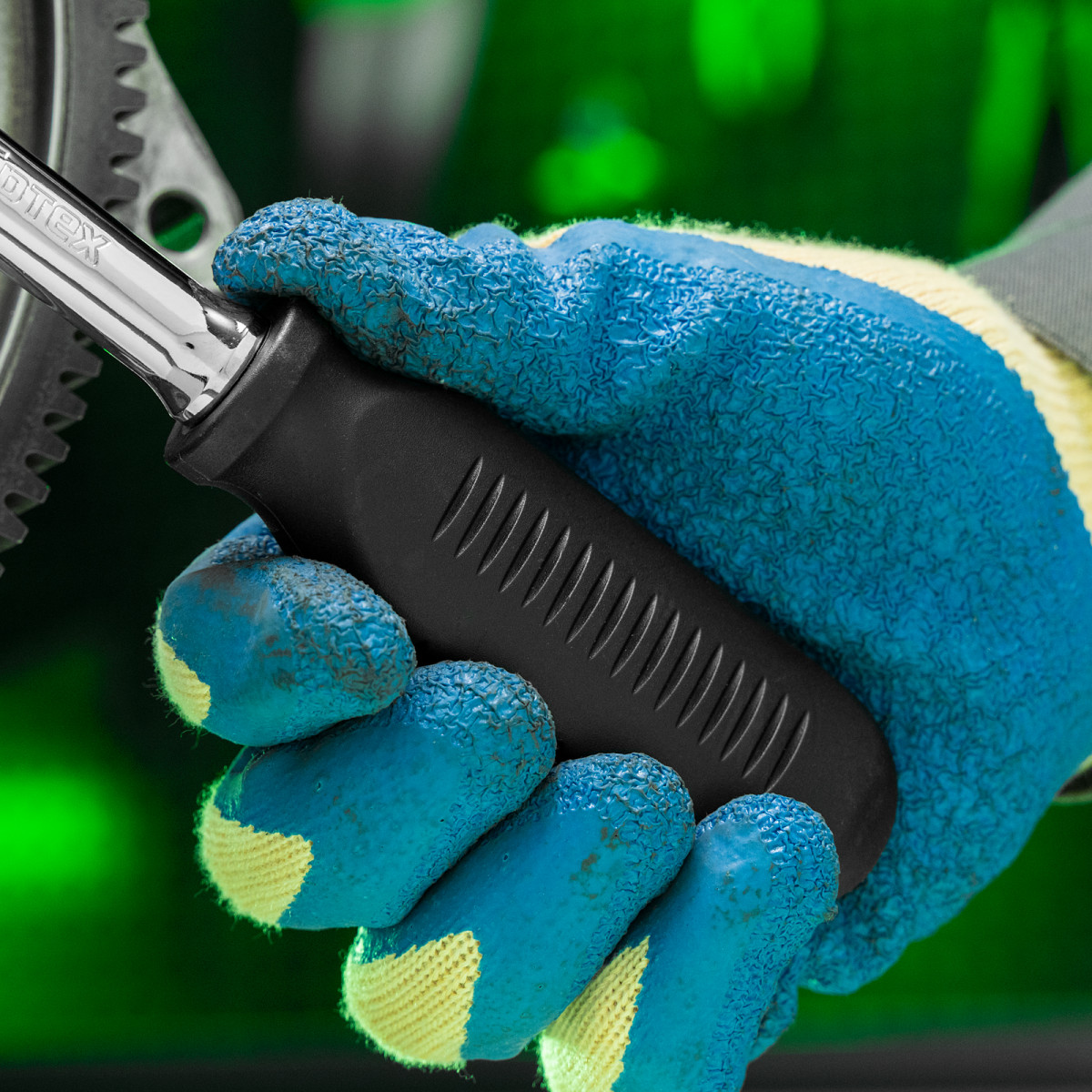 - Надежная фиксация — шариковый замок крепко удерживает торцевую головку, поэтому она не соскочит во время работы.