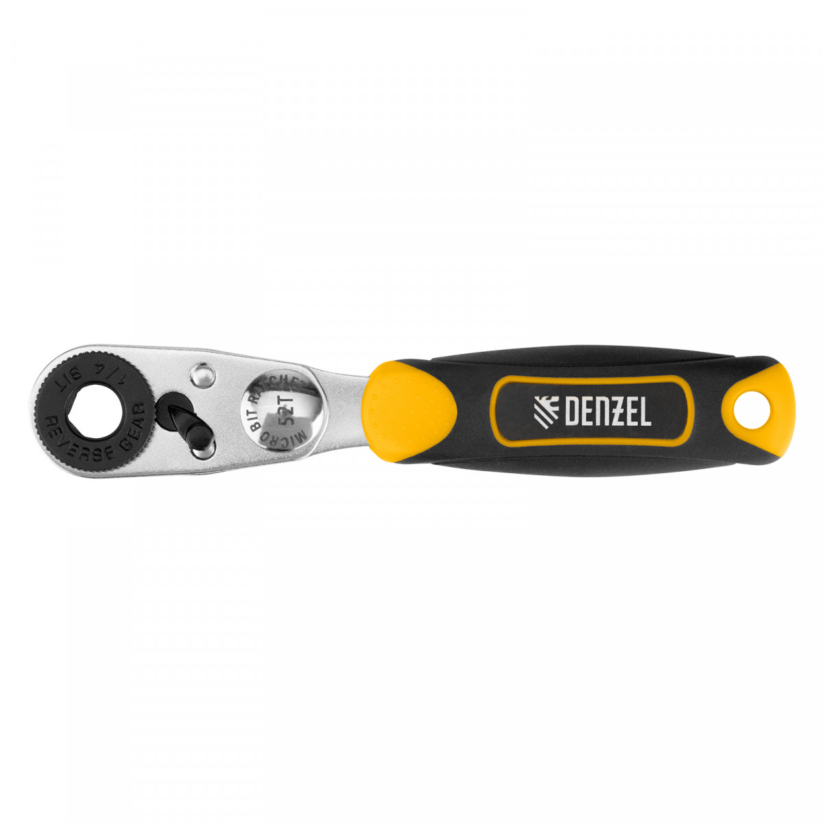Ключ-трещотка для бит 1/4", 52 зуба, CrMo, адаптер для торцевых головок Denzel