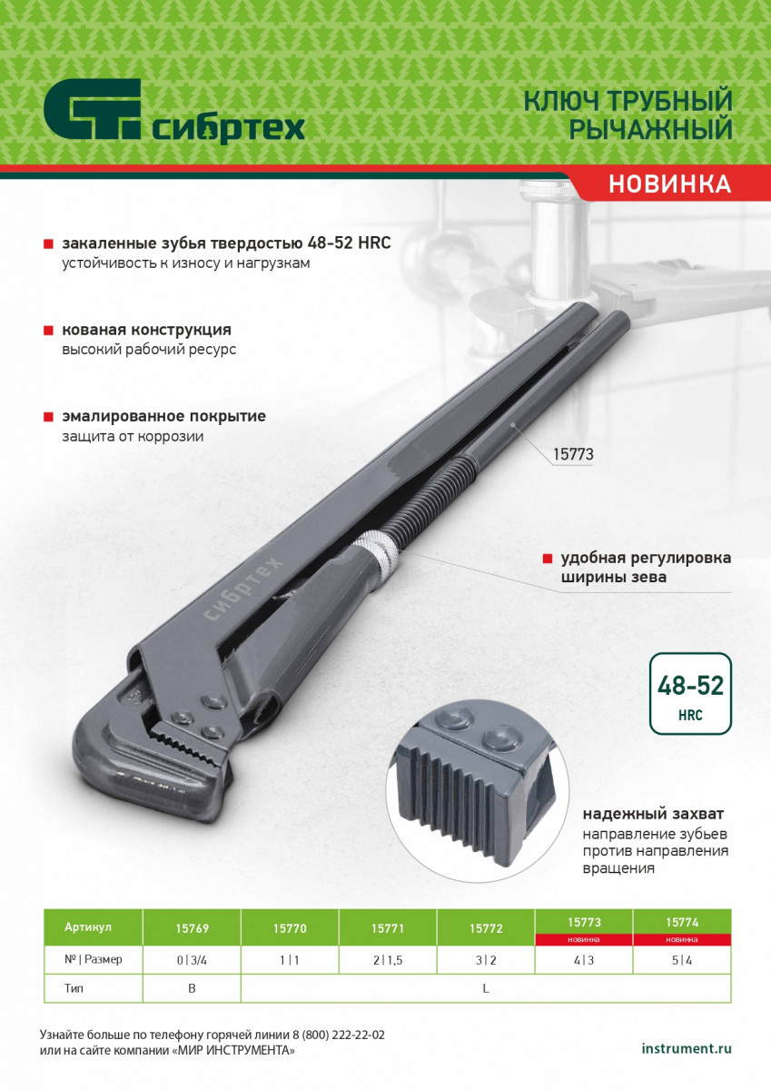 Кованый трубный рычажный ключ Сибртех №1 15770, тип «L», используется для захвата и вращения труб диаметром 1", а также других деталей со специальным профилем и без него. Рычажный механизм увеличивает рабочее усилие, снижая нагрузку на руки мастера. Инструмент рассчитан на бытовое и профессиональное применение.