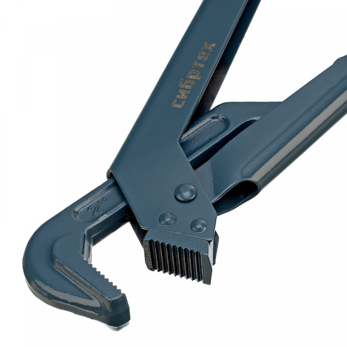 - Прочность и долговечность — кованая конструкция из закаленной легированной стали обеспечивает высокий рабочий ресурс, губки закалены до твердости 48-52 HRC.