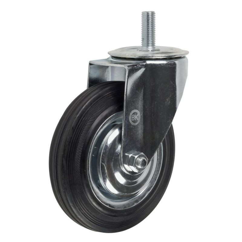 Колесная опора 100мм болт, поворотная, черная резина, роликоподшипник