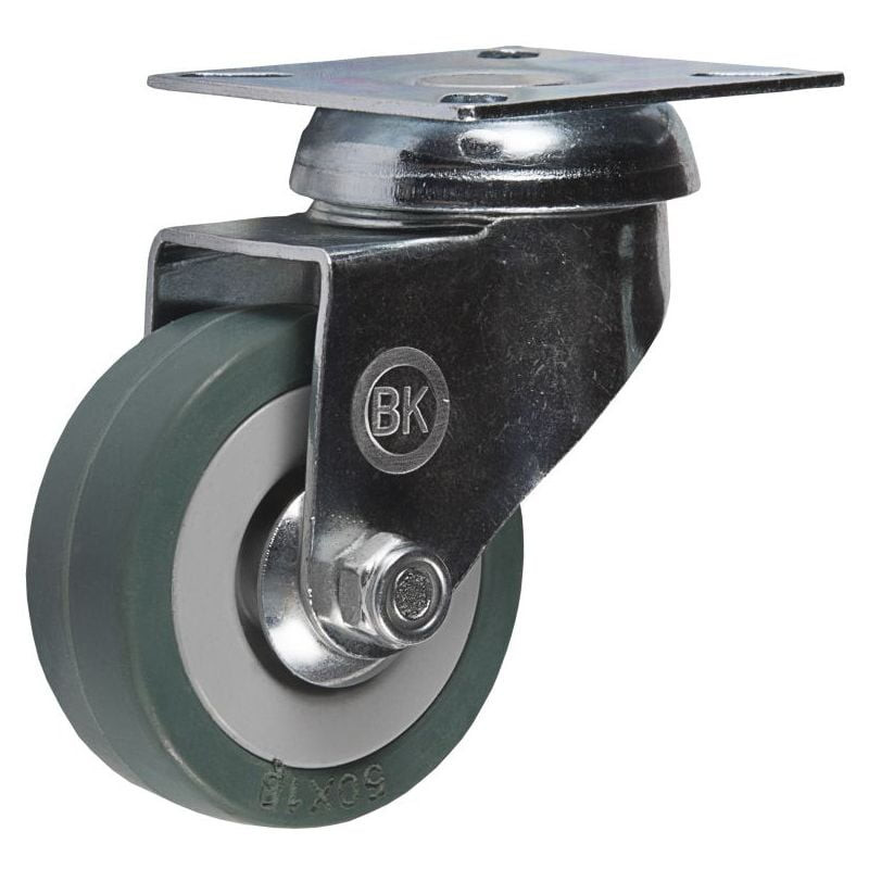Колесо аппаратное поворотное  SCg 93 предназначено для легкого торгового, лабораторного, медицинского, гостиничного, офисного и складского оборудования. Шинка выполнена из термопластичной серой резины. В оси установлен подшипник скольжения. Кронштейн с платформенным типом креплением изготовлен из оцинкованной стали. Полипропиленовый обод закрыт стальными кожухами. Не оставляет следов на напольных покрытиях. Отличается хорошими ходовыми качествами, повышенной маневренностью, низким уровнем шума, устойчивостью к внешним химическим воздействиям. Диапазон температур — от -35ºC до +60ºC.