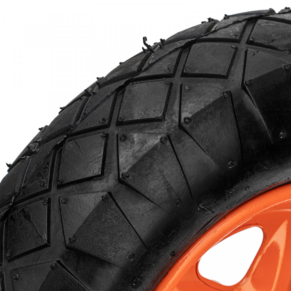 • Двухслойная покрышка с протектором — колесо устойчиво к повреждениям и обеспечивает маневренность тачки.