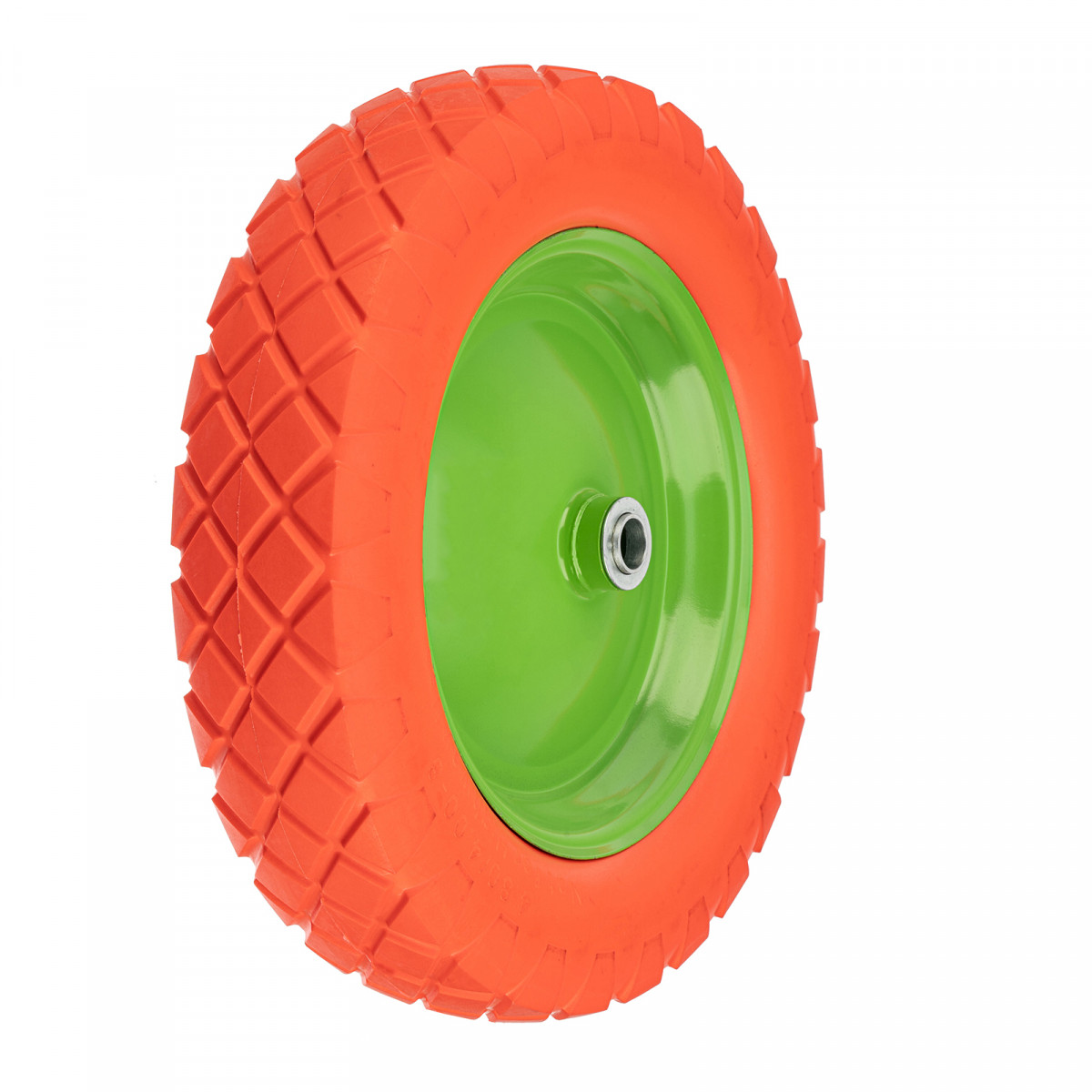 Полиуретановое колесо 4.80/4-8 Сибртех 689775 с длиной оси 90 мм и диаметром подшипника 20 мм — движущий элемент тачек Palisad 68923, 689233, 68937, Сибртех 689643 и др. Непрокалываемое колесо подходит для использования в самых жестких условиях. В отличие от пневматических колес не требует подкачки, обслуживания и легко отмывается от грязи.