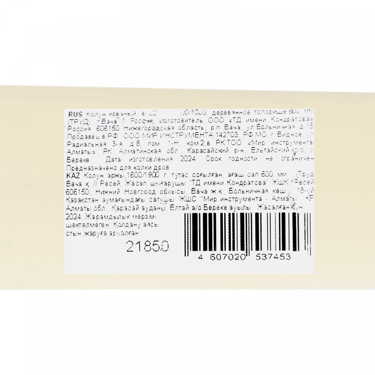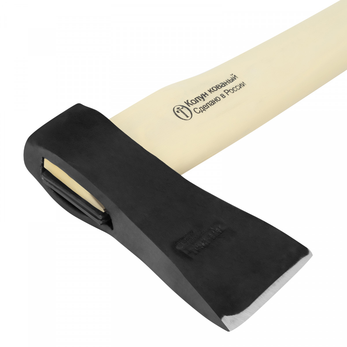 • Стойкость к воздействиям внешней среды — деревянное топорище выполнено из березы, отшлифовано, покрытой защитной шпатлевкой и пленкой.