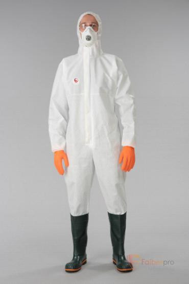 Конструкция защитного комбинезона DИОН К60: капюшон; застёжка на тесьму «молния» закрыта планкой; для дополнительной фиксации планка проклеена клейкой лентой; низ рукавов и брюк обработаны эластичной лентой. Комбинезон предназначен для защиты от общепроизводственных загрязнений, от нетоксичной пыли, воздействия брызг жидкости, жидких химических веществ (органических растворителей, кислоты 40 % концентрации, щелочи 40% концентрации), смол, масел.