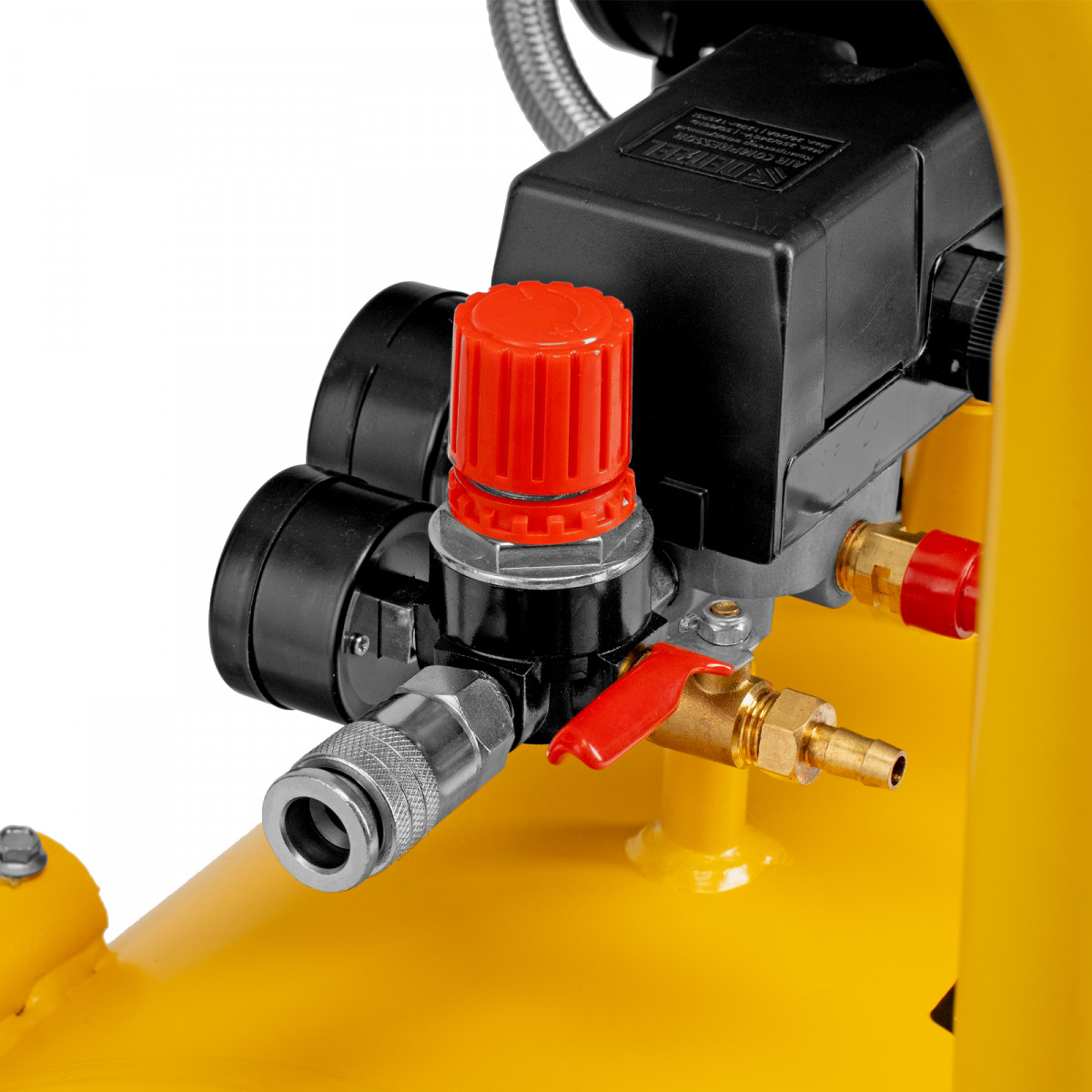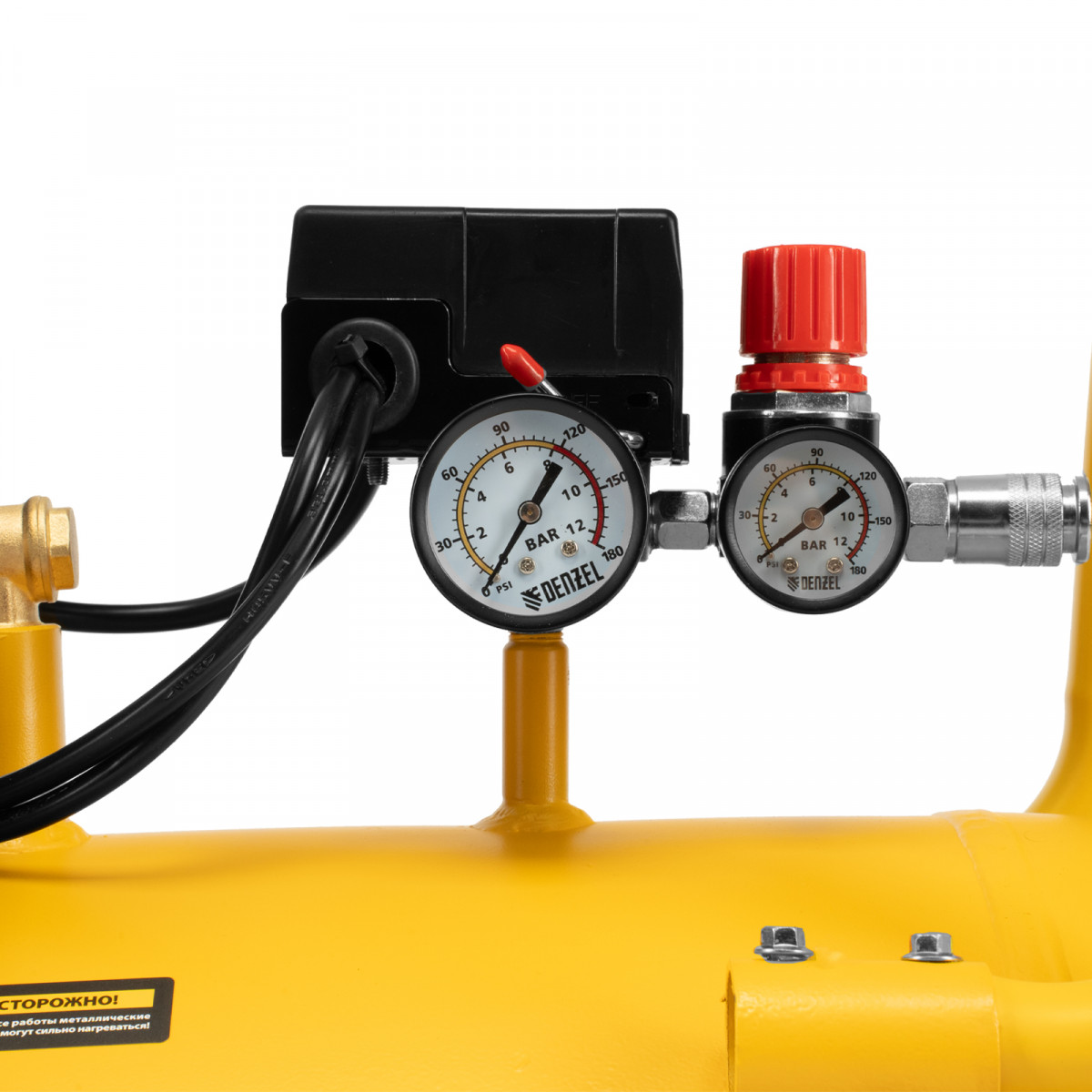 • Удобный контроль работы — компрессор оснащен 2 манометрами для отслеживания давления в ресивере и пневмолинии