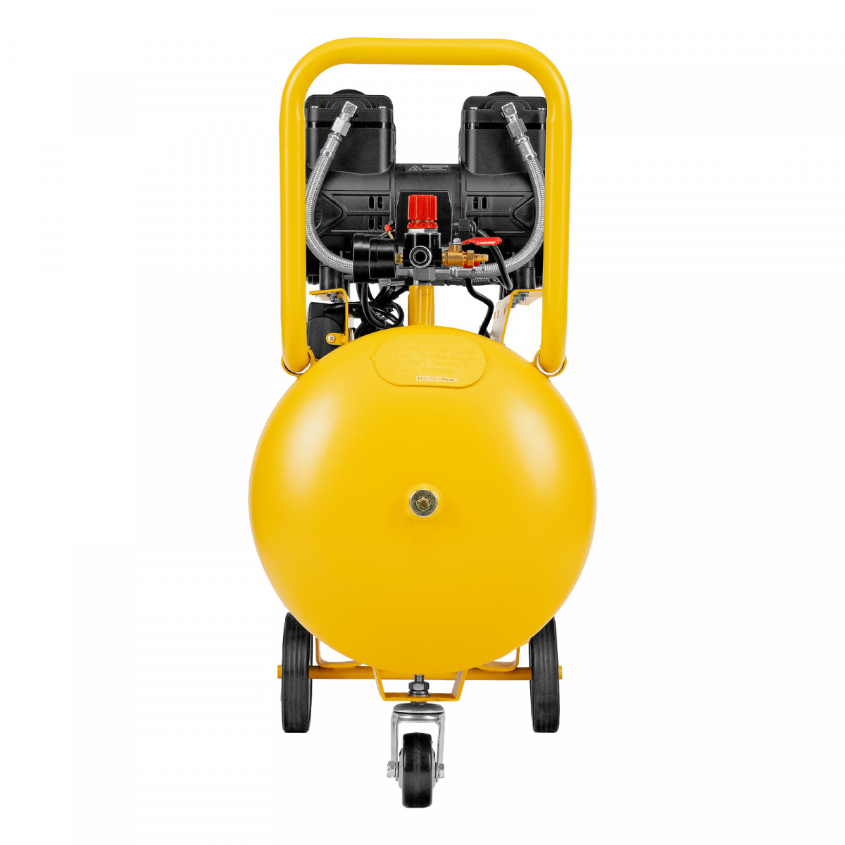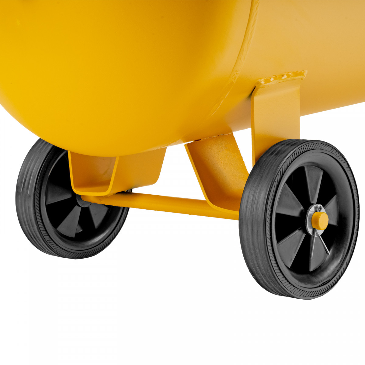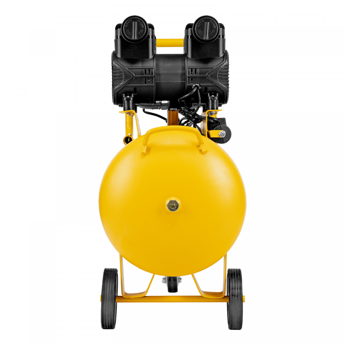 • Мобильность — 3 колеса, в том числе 1 поворотное, и транспортировочная рукоятка упрощают перемещение компрессора по рабочей зоне.