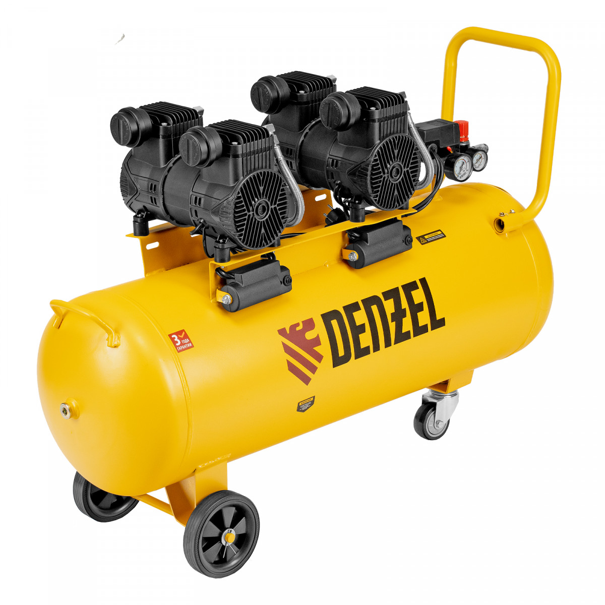 Компрессор безмасл. малошумный DLP-3000/100, 3 кВт, 2х1,5 кВт,100 л, 2850 об/мин,500 л/мин Denzel