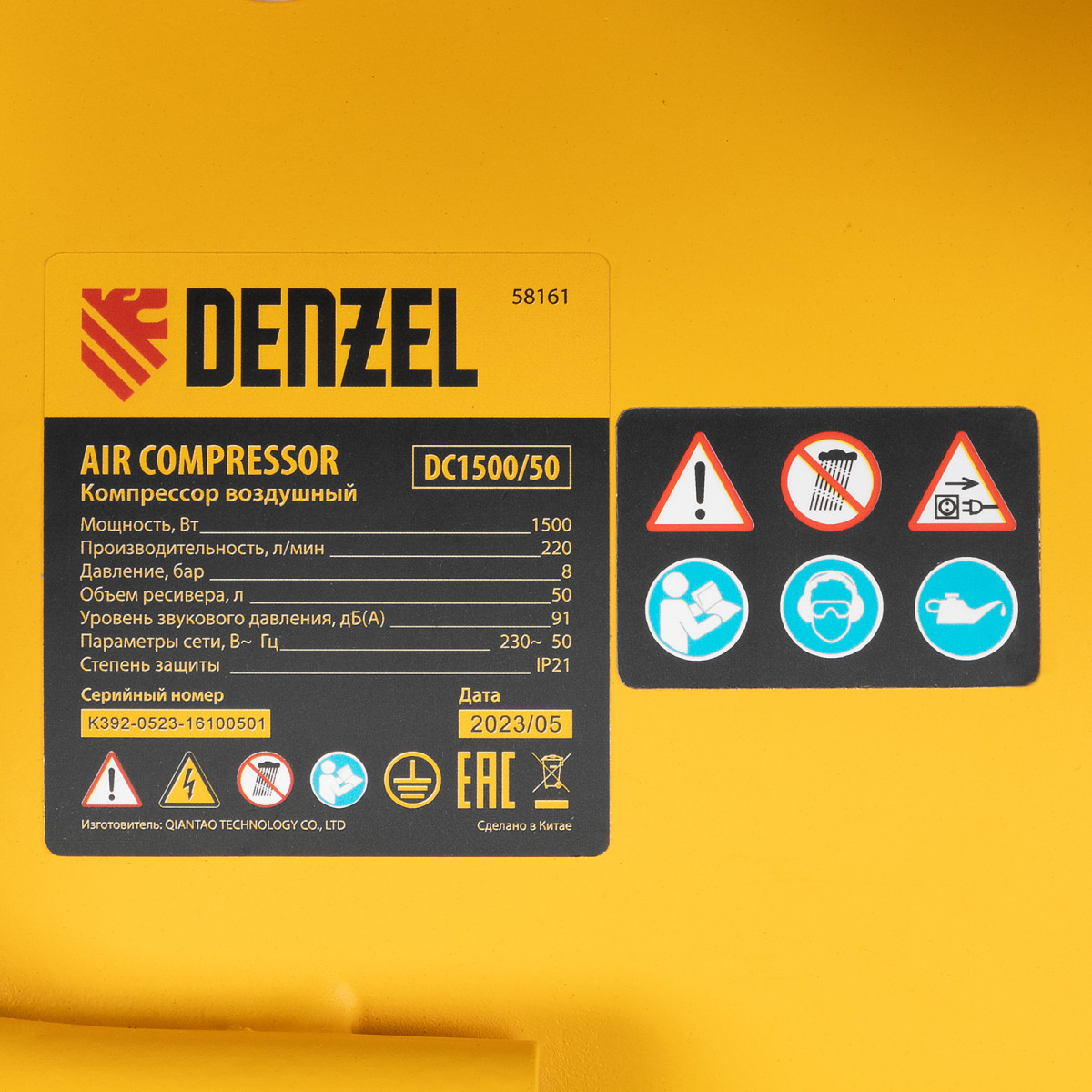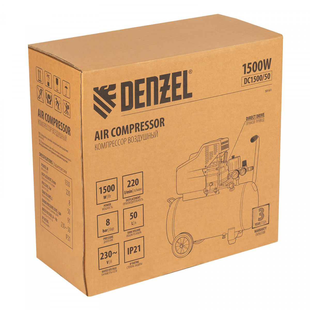 Компрессор воздушный, прямой привод DC1500/50, 1.5 кВт, 50 литров, 220 л/мин Denzel