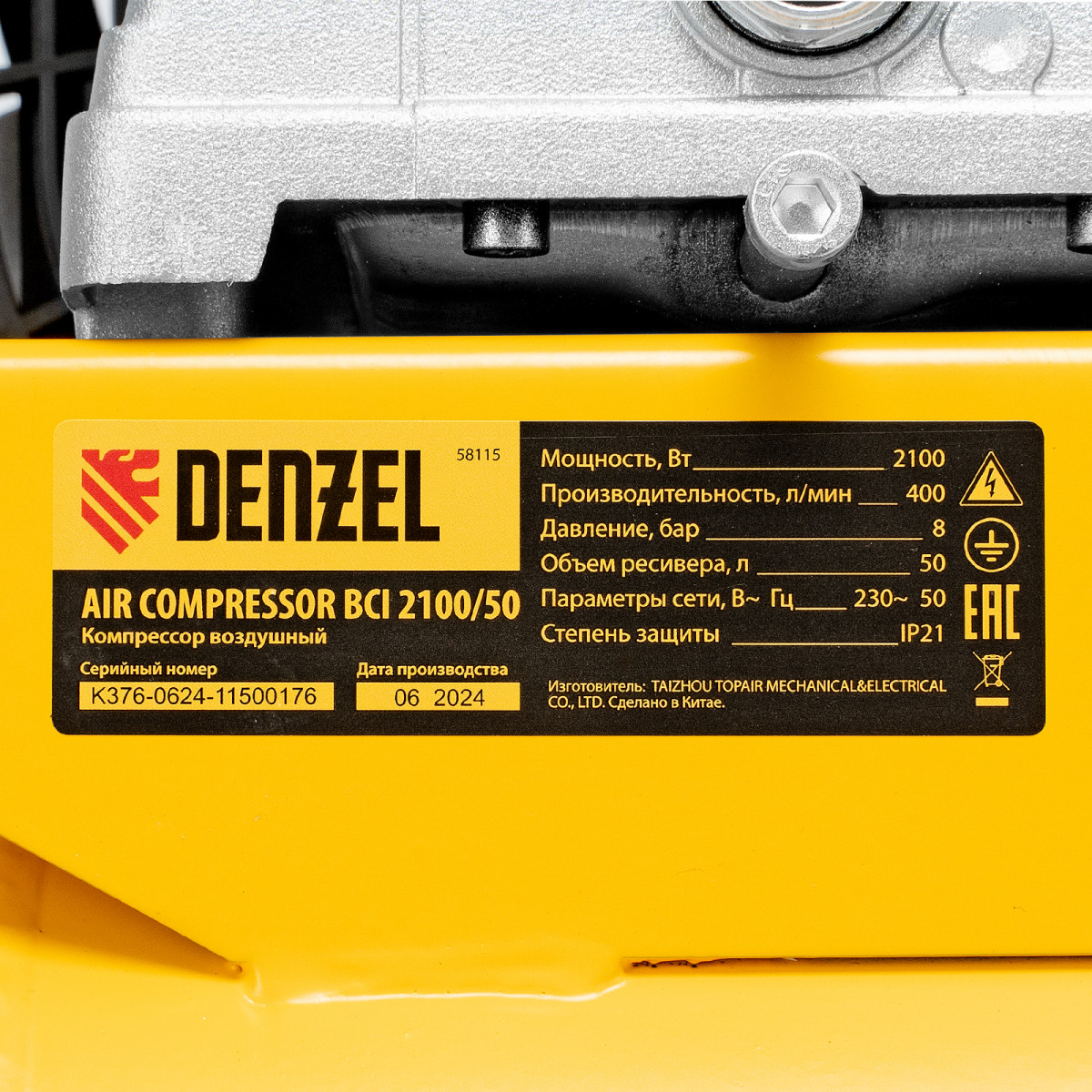 Компрессор воздушный рем. привод BCI 2100/50, 2,1 кВт, 50 литров, 400 л/мин Denzel