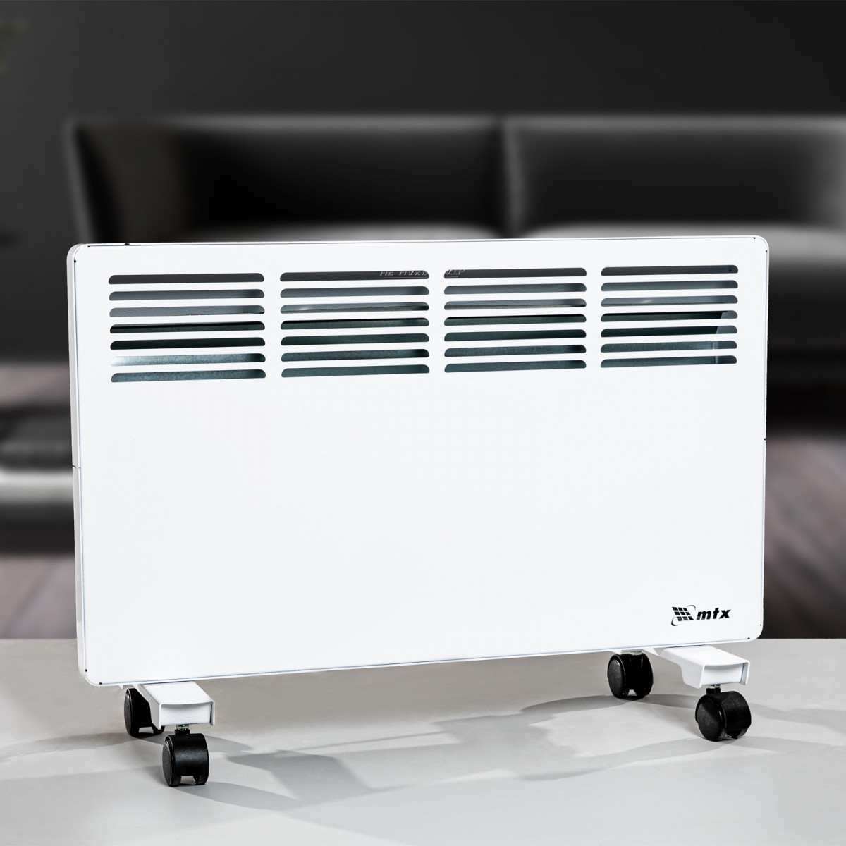 Конвектор электрический MTX KM-2000.2 98126 с X-образным нагревателем, колесами и термостатом, мощностью 2000 Вт, предназначен для использования в закрытых помещениях: квартирах, офисах, на производствах, в общественных местах и т.д. Рекомендуемая площадь обогрева составляет 25 кв.м. Х-образный нагревательный элемент обеспечивает быстрый и равномерный прогрев помещения до необходимой температуры, при этом не сушит воздух.