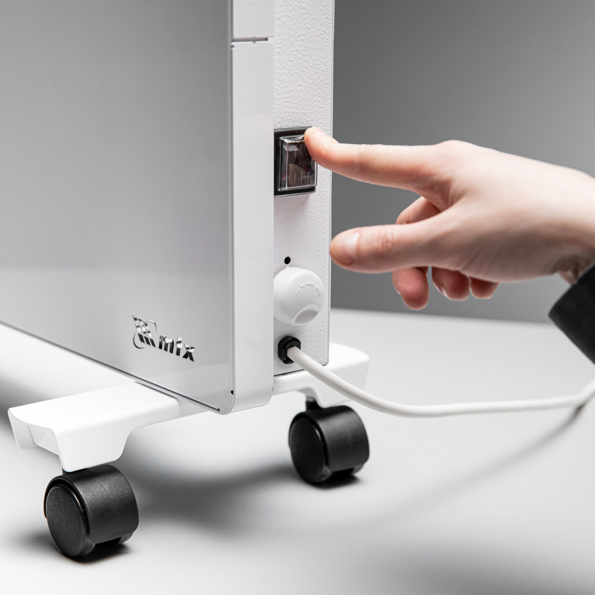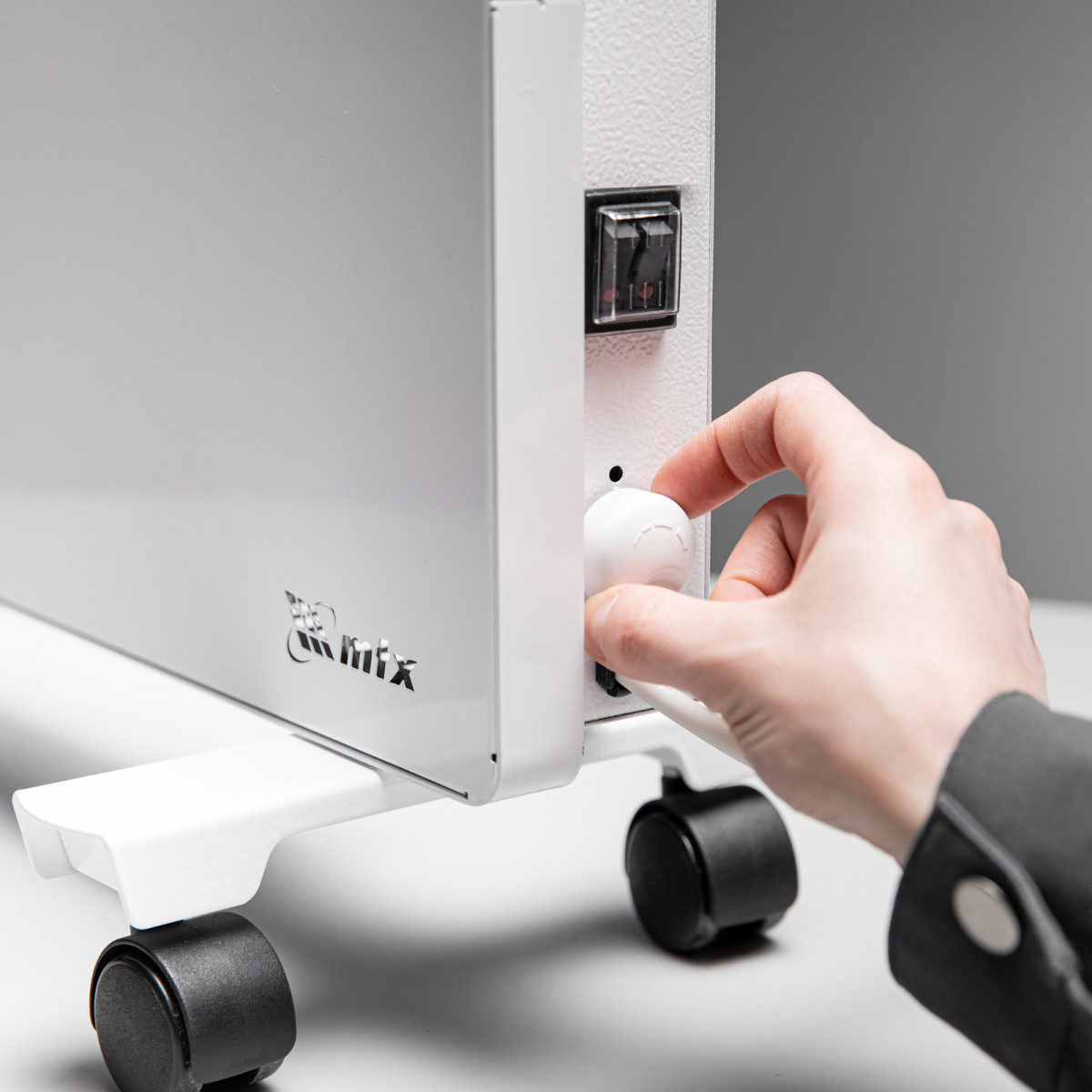 - Удобная настройка и автоматическое поддержание заданных параметров — механический термостат позволяет плавно регулировать температуру нагрева в помещении, а затем поддерживает ее, отключая и снова включая конвектор по мере необходимости.