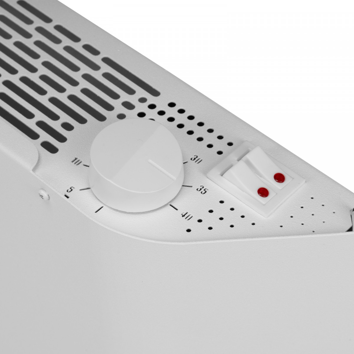 - Автономная работа — термостат автоматически включает и отключает конвектор, поддерживая заданную температуру в помещении.