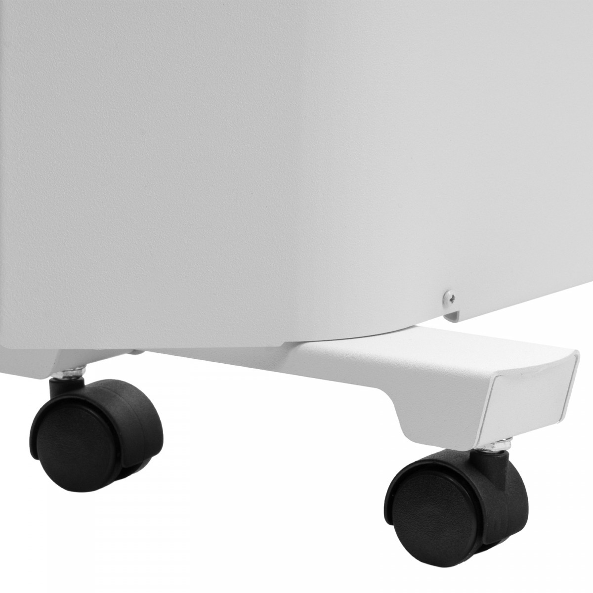 - Напольная или настенная установка — в комплект поставки включена цельнометаллическая крепежная рамка для стены, а также стальные ножки с колесами.