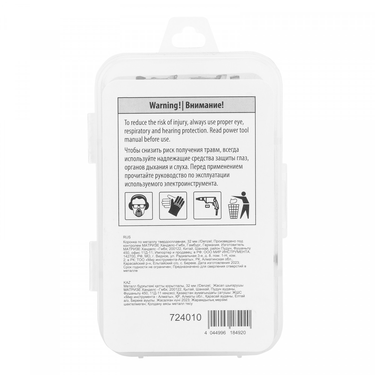 Коронка по металлу твердосплавная, 32 мм Denzel