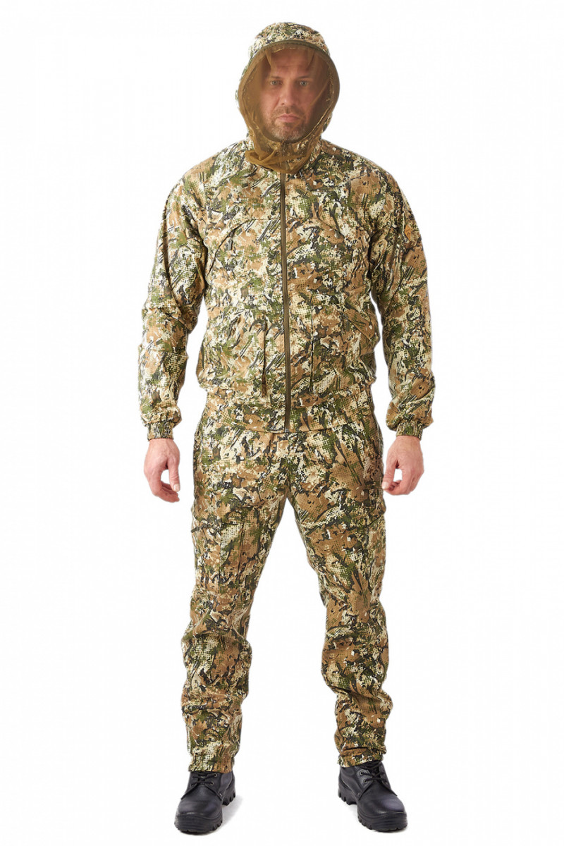 Изготовлен из легкой, дышащей и прочной смесовой ткани рип-стоп, костюм Рысь обеспечивает надежную защиту от солнечных лучей, насекомых и механических повреждений. Низ куртки и рукавов на резинке, что обеспечивает идеальную посадку, капюшон с регулировкой и противомоскитной сеткой защитит от ветра и насекомых. Функциональные нагрудные и нижние карманы на молнии позволят хранить необходимые мелочи под рукой.