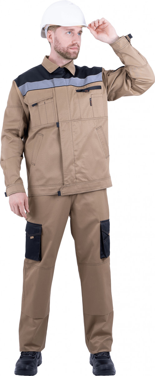 Костюм мужской ДОКЕР с МВ отделкой куртка, полукомбинезон, сафари/черный