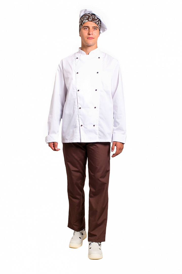 Костюм мужской повара Шоколад (тк.ТиСи), коричневый/белый