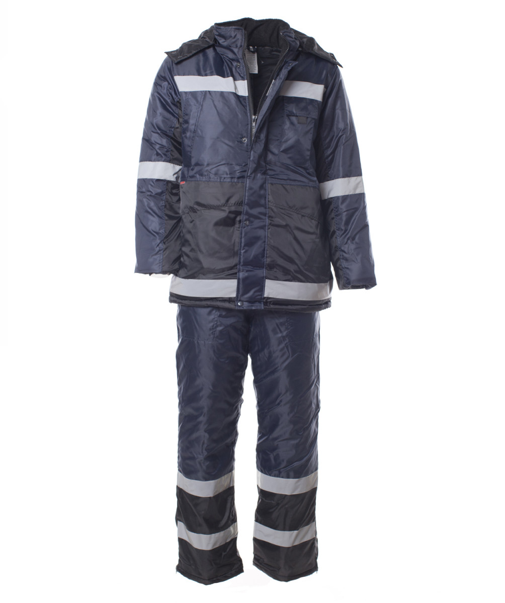 Костюм "МЕТЕО" изготовлен в соответствии с ГОСТ и включает в себя 2 предмета: куртка/полукомбинезон. Центральная застёжка - молния. Для дополнительной защиты от ветра присутствует ветрозащитная планка с застежкой на кнопки. Прилегание куртки регулируется по низу. Куртка оснащена ветрозащитной юбкой на подкладке. На костюме расположены многофункциональные карманы для хранения мелочей. Капюшон на куртке утепленный и съемный. Воротник-стойка имеет флисовую подкладку для дополнительного комфорта. Утепленный полукомбинезон закрывается на тесьму "молния". Накладные карманы на передних половинках обеспечивают удобный доступ к необходимым вещам. На спине вдоль линии талии и на бретелях эластичная резинка. Молнии на нижних боковых швах закрыты планкой на кнопки. Для безопасной работы сотрудника в местах с плохим освещением на костюме «МЕТЕО» предусмотрена световозвращающая полоса шириной 50 мм.