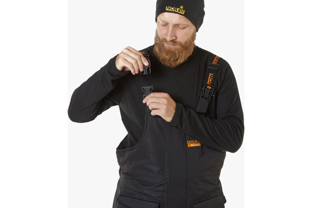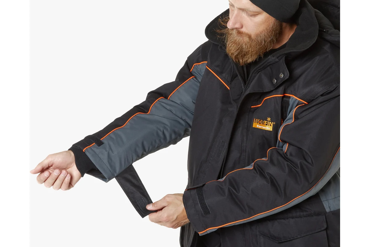 Зимний костюм NORFIN ELEMENT+, размер L, 4320-03-L - универсальный функциональный тёплый костюм, рассчитанный на эксплуатацию до температуры -35ᵒC. Состоит из куртки и полукомбинезона, сшитых из материала NORTEX BREATHABLE, обладающего водонепроницаемостью 6 000 мм и дышащей способностью 4 000 г/м²/24 час, и дополненных утеплителем THERMO GUARD.