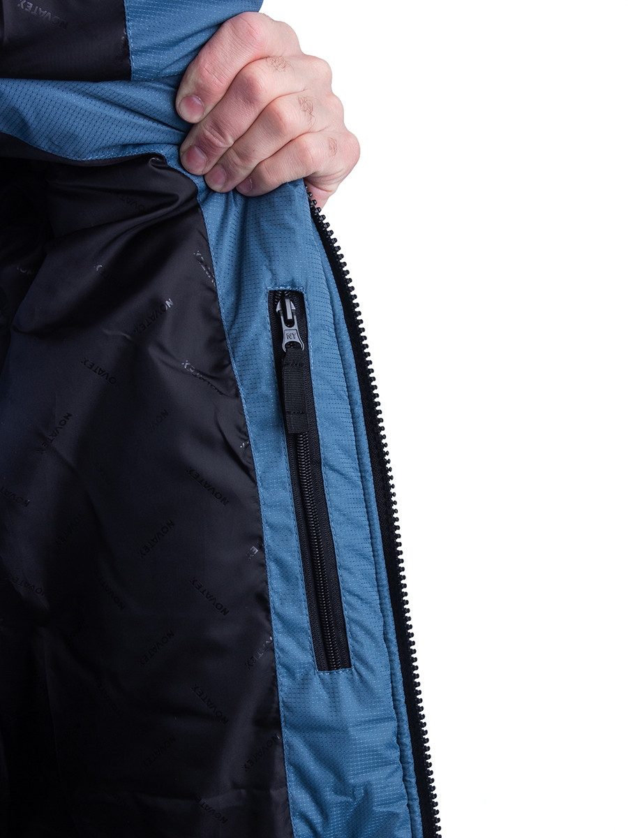 Костюм изготовлен из прочной ткани Таслан Rip Stop с пропитками WR PU. Состоит из куртки и полукомбинезона.