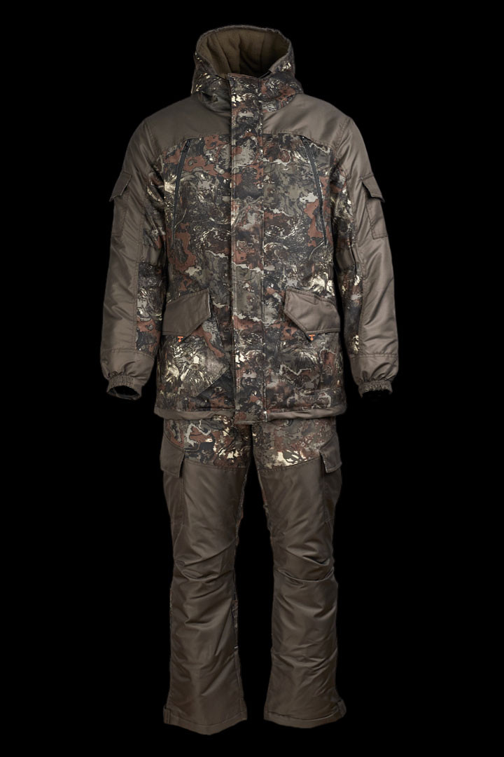 Костюм выполнен из ткани Alova/Cat's eye (100% ПЭ) и утеплен слоем PRO-WARM (Слайтекс), что гарантирует идеальную температуру тела в любых условиях. А технология сохранения тепла WARM SAVE System обеспечивает еще более высокую защиту от холода – температурный режим Hard -35°C.Особое внимание уделено комфорту и свободе движений. Анатомический крой куртки и полукомбинезона обеспечивает максимальную свободу движений, а 11 функциональных карманов позволяют хранить все необходимые вещи под рукой. Противосугромные манжеты и ветрозащитная планка дополнительно укрепляют защиту от внешних факторов.