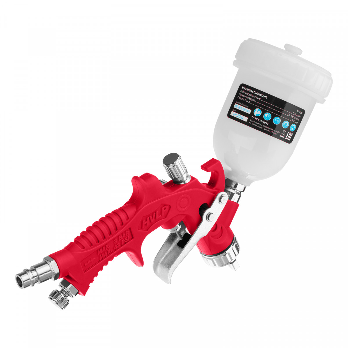 • Верхнее расположение бака — краскопульт удобно заправлять, лакокрасочный материал расходуется полностью.