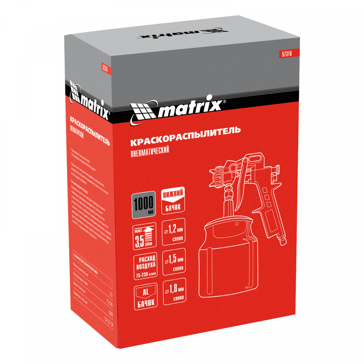 Краскораспылитель пневматический с нижним бачком V 1, 0 л, сопло D 1.2, 1.5 и 1.8 мм Matrix