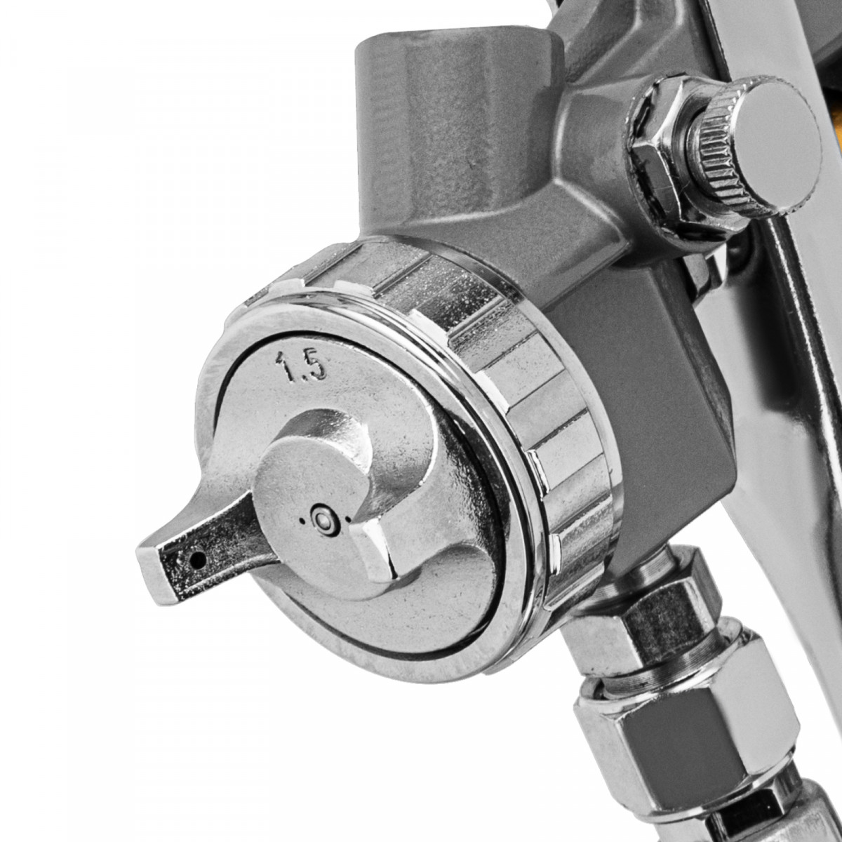 - Эффективность — краскораспылитель с типом распыления MP (среднее давление) обеспечивает высокое качество окрашивания с невысокими потерями рабочего состава.