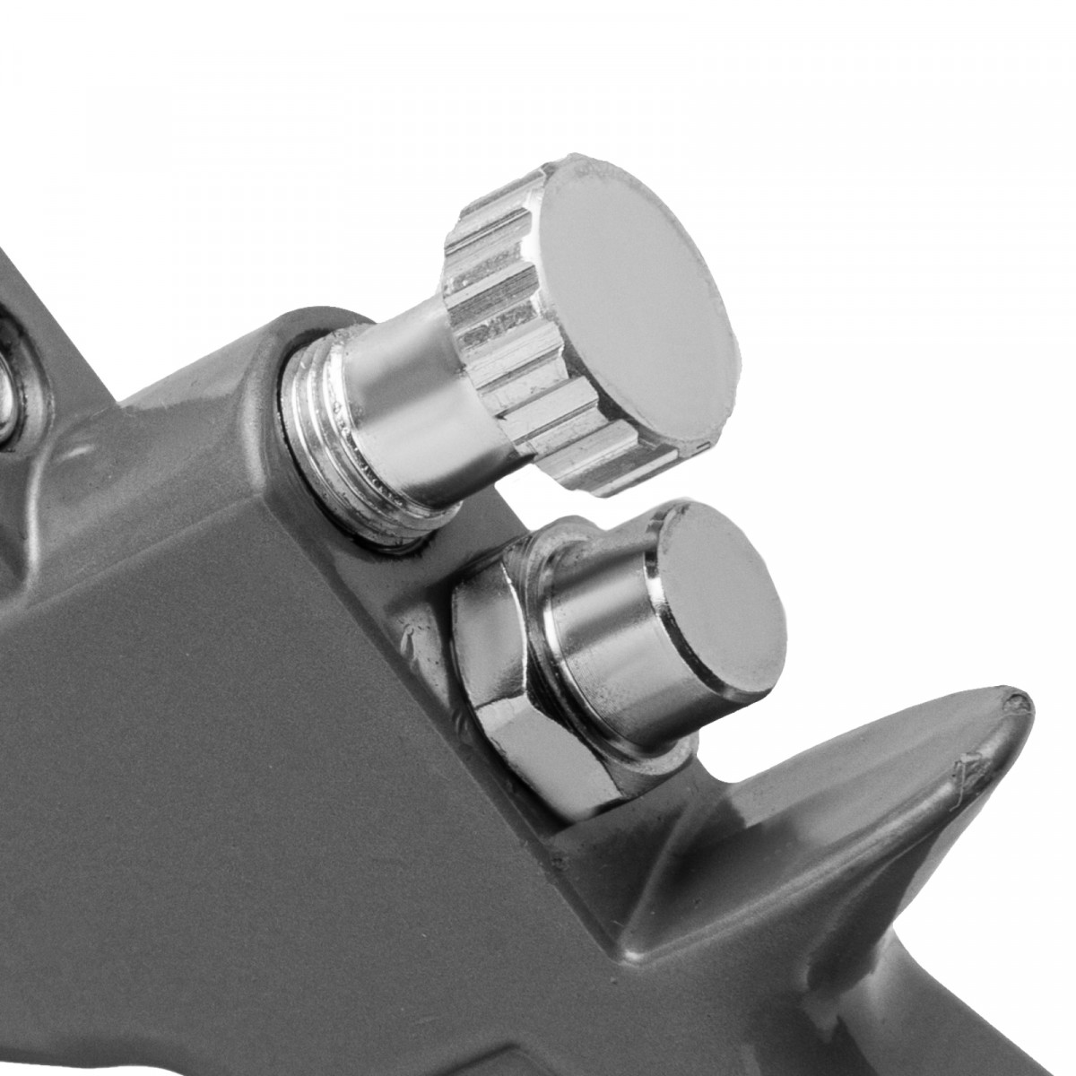 Пневматический краскораспылитель Matrix 57316 с нижним бачком объемом 1,0 л и соплами диаметром 1,2, 1,5 и 1,8 мм используется для окрашивания металлических, деревянных, керамических и пластмассовых поверхностей. Благодаря сменным соплам краскораспылитель может работать с различными по густоте составами: лаком, шпаклевкой, краской. Он пригодится на стройке, в автомастерской и на мебельном производстве.