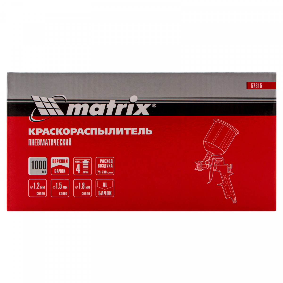 Краскораспылитель пневматический с верхним бачком V 1, 0 л, сопло D 1.2, 1.5 и 1.8 мм Matrix
