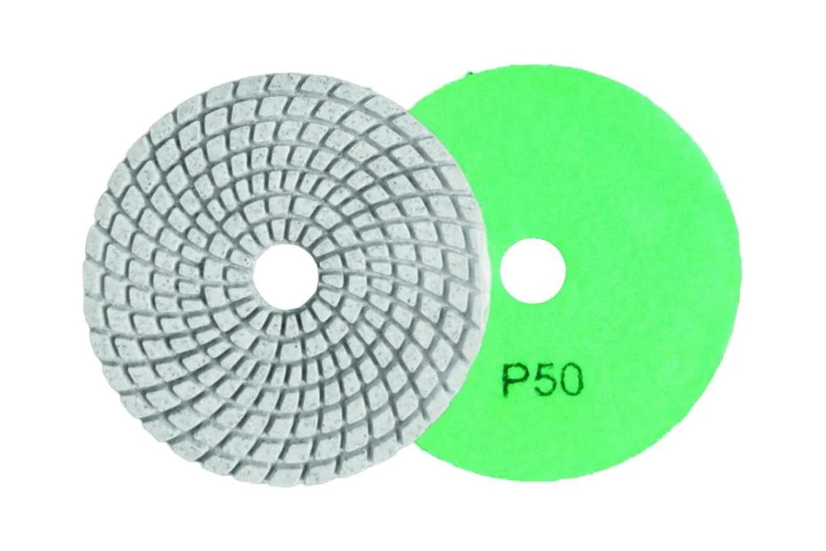 Алмазный гибкий шлифовальный круг 100мм, Р50, мокрое шлифование Вихрь применяется для полировки/шлифовки поверхностей из натурального и искусственного камня. Отличается высоким качеством полировки, производительностью и увеличенным ресурсом.*