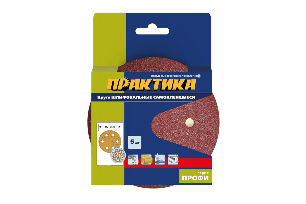 Круги шлифовальные на липкой основе ПРАКТИКА 6 отверстий, 150 мм P 60 (5шт.) картонный подвес