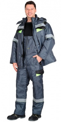Куртка зимняя ХОВАРД светло-серая/черная/лимоная отделка и СОП тк.оксфорд