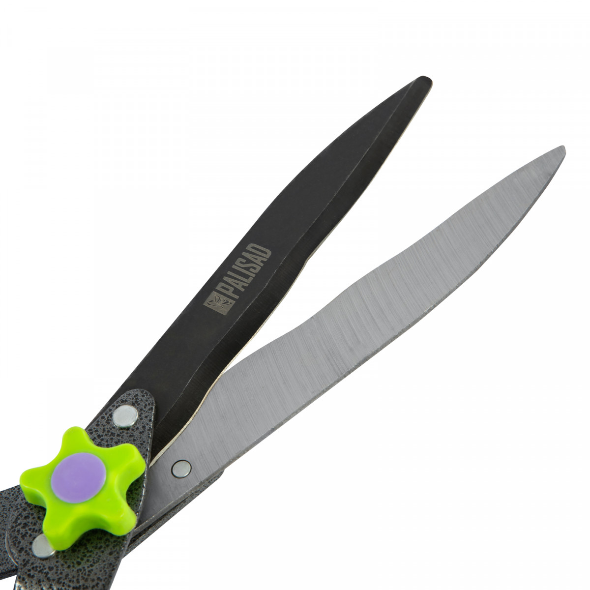 Кусторез Palisad 60836 длиной 560 мм, с волнистыми лезвиями и двухкомпонентными рукоятками, позволяет провести омолаживающую обрезку молодых побегов толщиной до 10 мм. С его помощью можно ухаживать за кустарниками и живой изгородью. Тефлоновое покрытие основного лезвия обеспечивает легкость реза. Волнистые кромки надежно удерживают ветки, поэтому инструмент подходит для подравнивания побегов с гладкой корой.