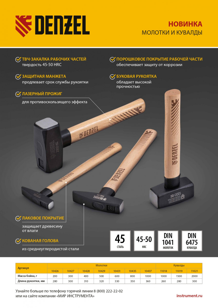 • Устойчивость к деформации — голова изготовлена из кованой стали 45, а рабочие поверхности закалены до твердости 50-55 HRC.