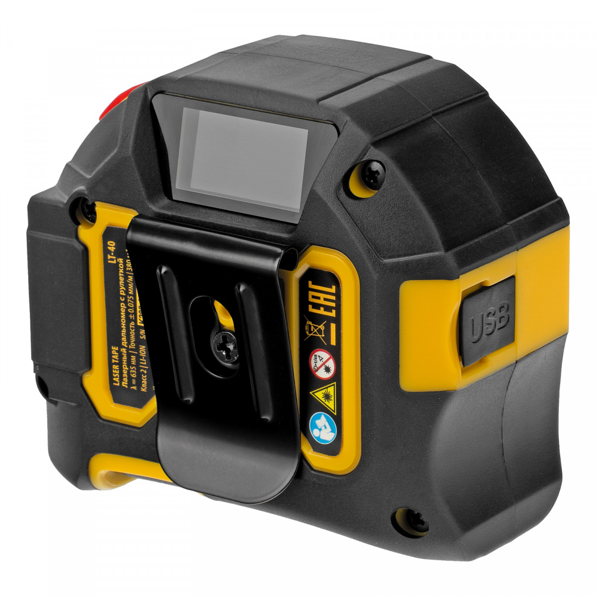 Лазерный дальномер с рулеткой LT-40, 5м x 19 мм, дальномер 40м, автомат. фиксация Denzel
