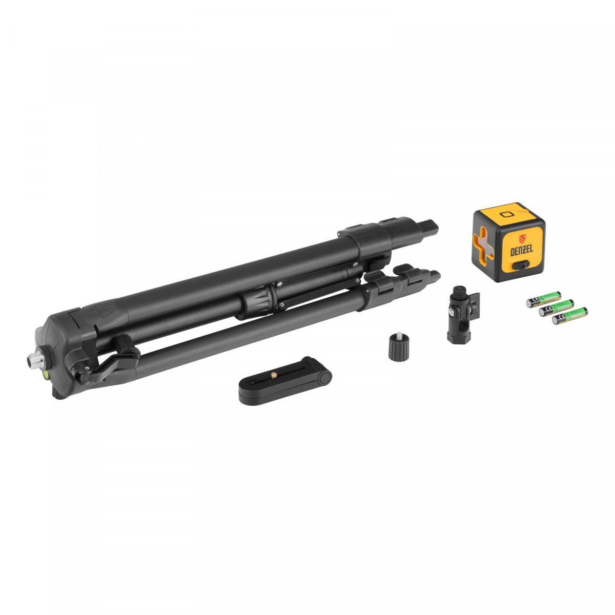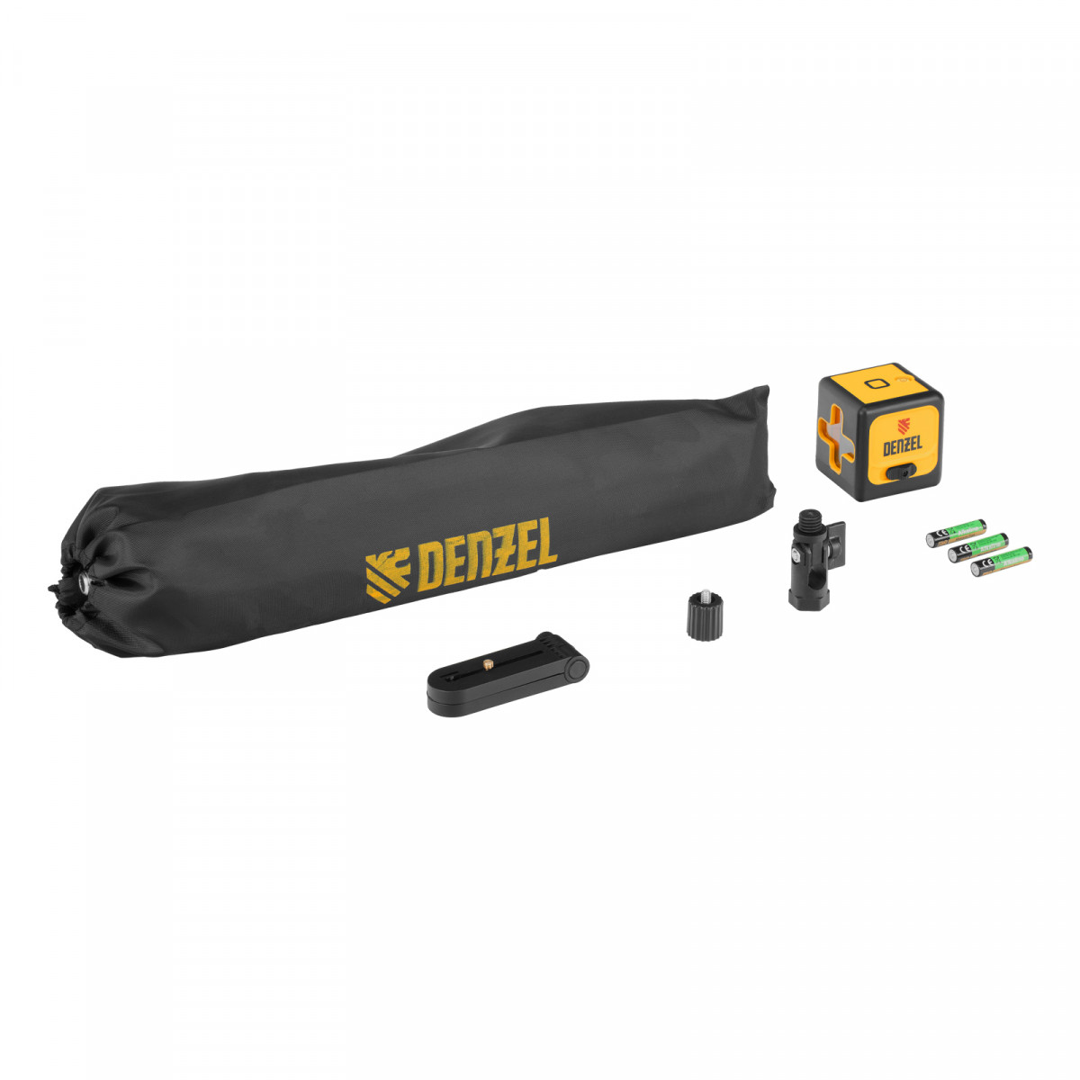 Лазерный уровень - 1 штМагнитный держатель - 1 штБатарейка ААА - 3 штАдаптер 5/8-1/4 - 1 штУгловой адаптер 5/8 - 1 штШтатив - 1 штСумка для штатива - 1 штИнструкция - 1 шт