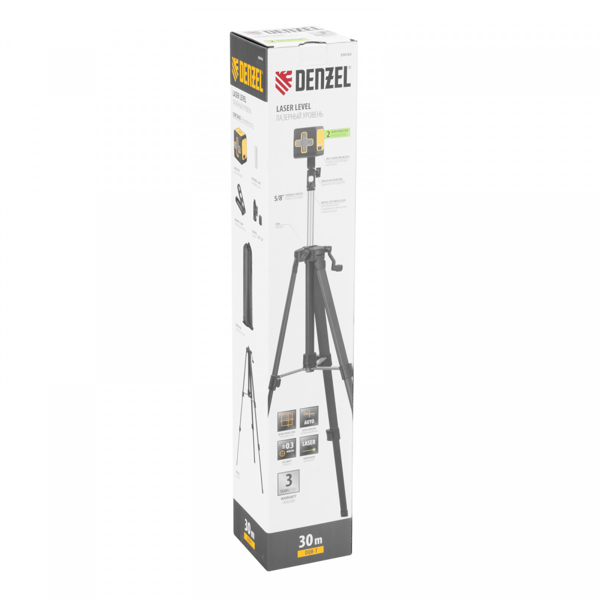 Лазерный уровень DQB-T, 30 м, зеленый луч, батарейки, штатив Denzel