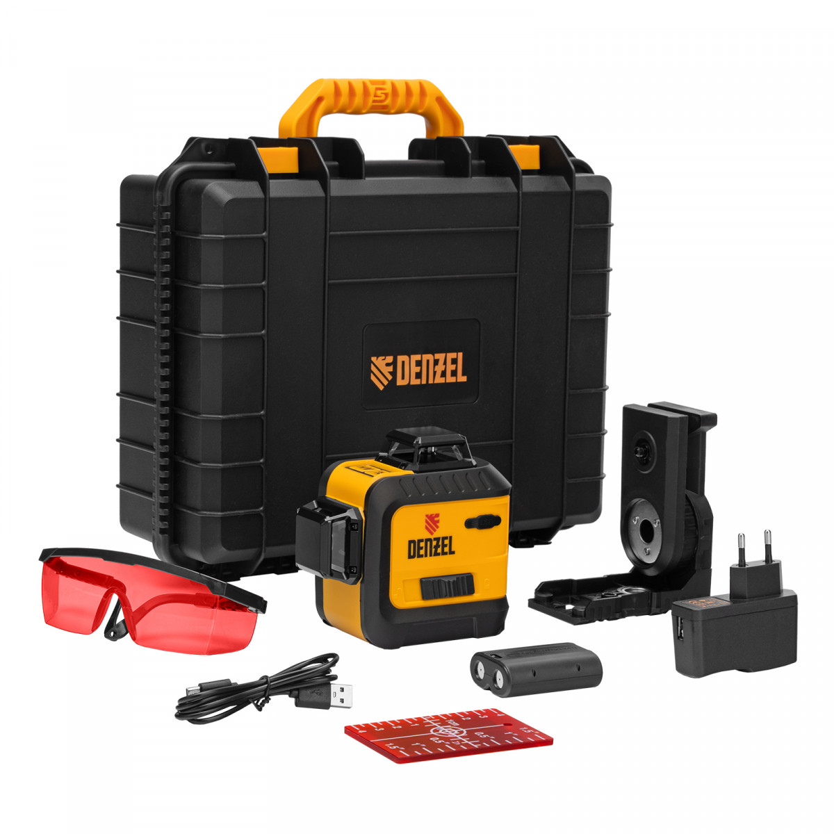 Лазерный уровень мультипризменный LX 360-2 Red, 30 м, 635 нм, аккумулятор Li 2800 мАч, резьба 5/8" Denzel