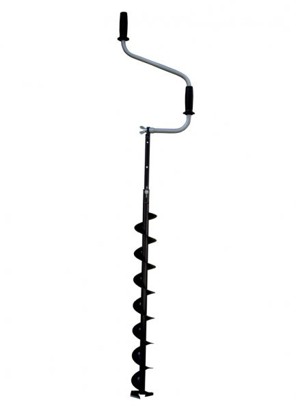 Двуручная конструкция с выдвижной штангой увеличивает скорость бурения лунок во льду.