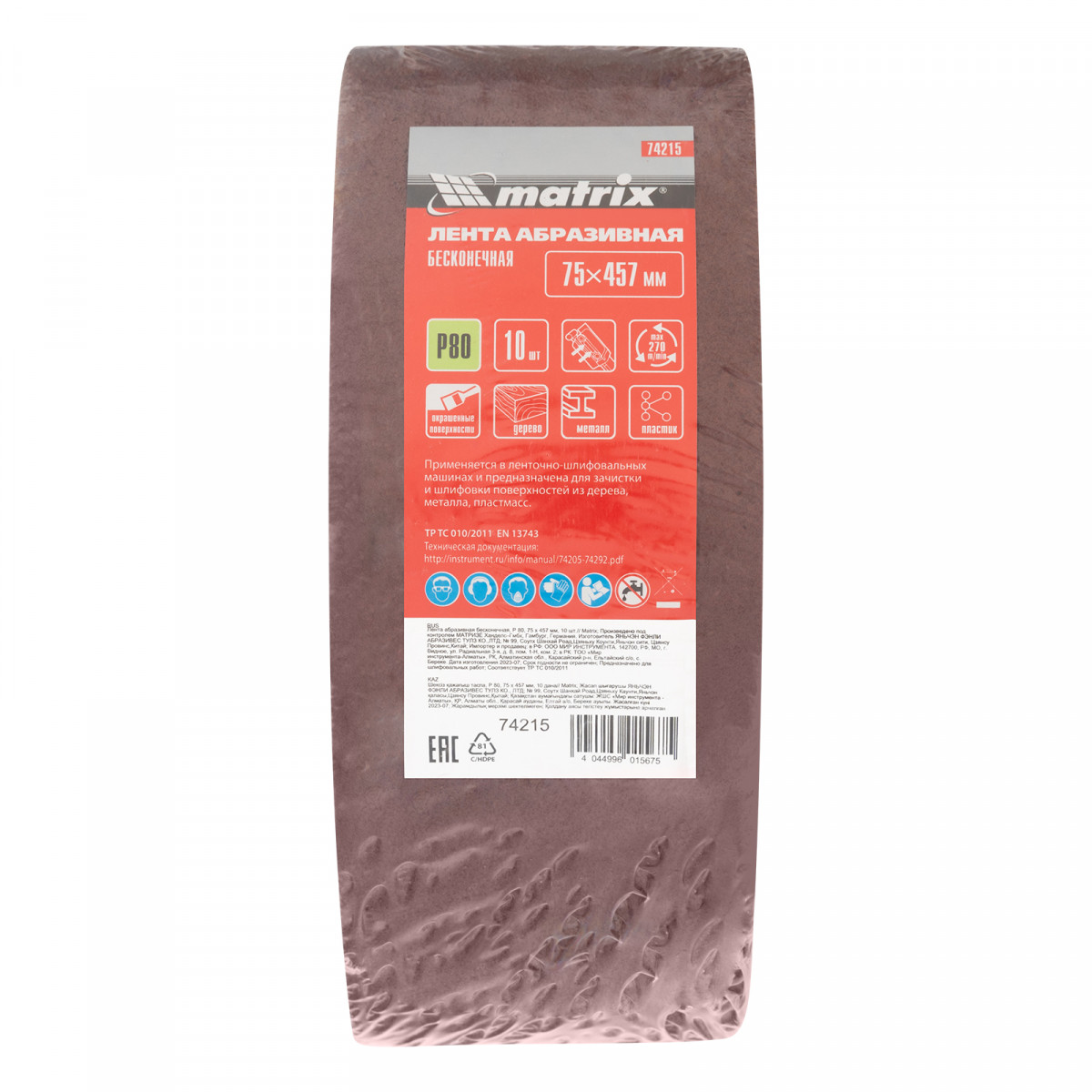 Лента абразивная бесконечная, P 80, 75 х 457 мм, 10 шт Matrix